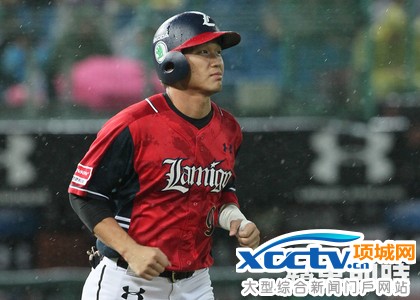 王柏融遭触身球,表情无奈上一垒。游智胜摄