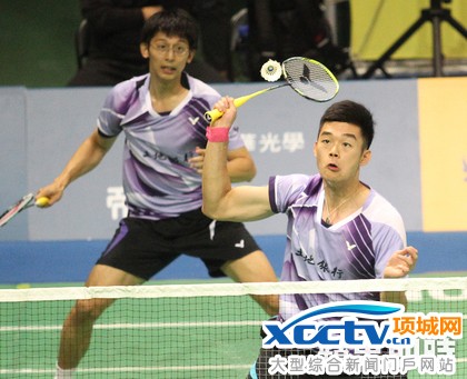 男双王齐麟(前)与陈宏麟击败香港选手。陈尧河摄