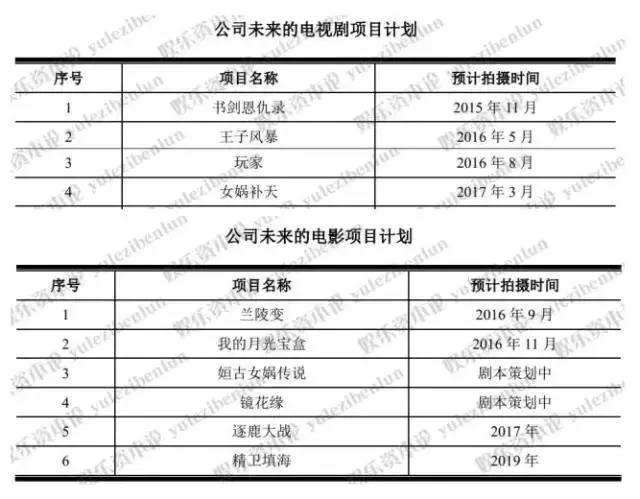在电影业务方面,公司已经投资拍摄《战神蚩尤》和《爱的频率》,公司计划于 2016 年开始每年拍摄一部大型古装剧和一部现代剧。